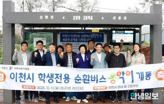안녕일보 배윤 기자 | 경기도이천교육지원청은 10월 13일, 이천시와 함께 이천 관내 중·고등학생들의 안전한 통학을 지원하는 학생통학 순환버스 ‘통학이’ 개통식을 열고 시범운행을 시작했다.