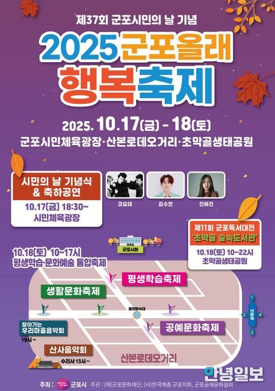 안녕일보 배윤 기자 | 군포문화재단 군포시평생학습마을은 오는 10월 18일, 산본로데오거리 일대에서 '제12회 군포시 평생학습축제'를 개최한다고 밝혔다. 이번 축제는 관내 평생학습 기관 및 단체·동아리 등이 직접 참여해 시민들과 함께 배우고 즐기는 축제의 장으로 꾸며진다.