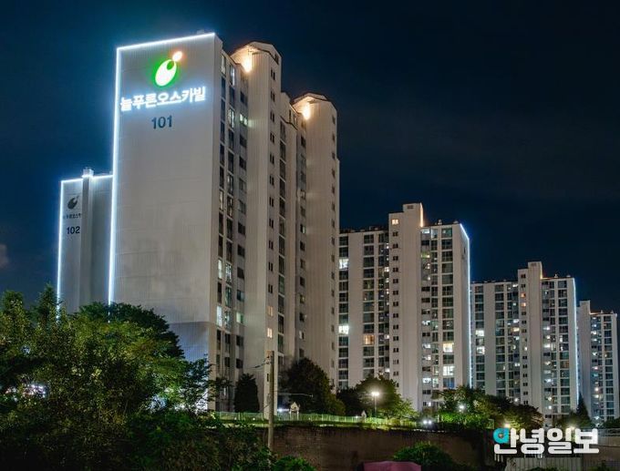 안녕일보 배윤 기자 | 오산시 관내 아파트(공동주택) 단지들이 오색찬란한 빛으로 물들고 있다.