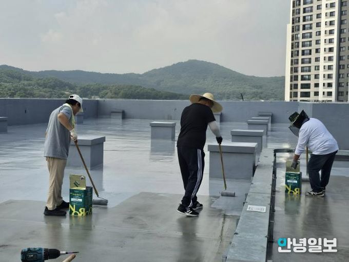 파주교육지원청은 최근 집중호우에 따른 옥상 누수로 교실과 복도에 빗물이 누수된 심학중학교에 현장지원팀을 지원하여 2회에 걸쳐 직접 옥상방수 보수공사를 실시하는 등 현장지원에 노력하고 있다.
