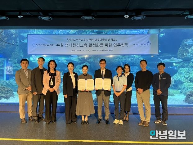안녕일보 배윤 기자 | 경기도수원교육지원청은 10월 14일, 수원 E:음 공유학교 프로그램의 다양화를 위해 경기도양궁협회 및 아쿠아플라넷 광교와 업무협약을 체결했다.