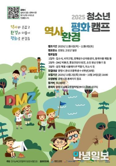이번 캠프는 오는 11월 6일부터 8일까지 2박 3일 강원도 고성군 일원에서 진행하며, 청소년들이 분단의 현장을 직접 보고 느끼며 평화의 의미를 배우는 현장 중심 체험형 프로그램으로 운영한다.