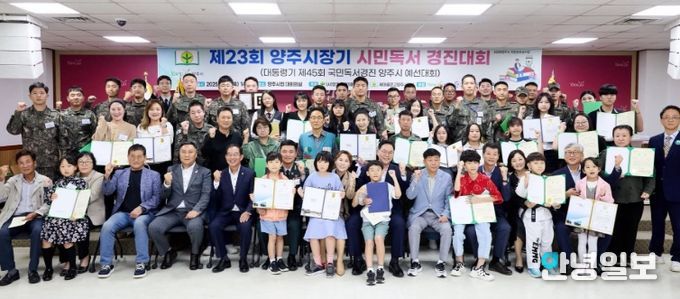 이번 대회는 제45회 대통령기 국민독서경진 양주시 예선대회와 병행하여 진행됐으며, 개인부문 최우수상은 ▲문재희(주원초) ▲용예솔(만송초) ▲임라희(유정글로벌) ▲김나윤(경민고) ▲김혜진(일반부) ▲연성호 하사(특별부) ▲정서후(편지글 학생부) ▲김승자(편지글 일반부) ▲김서율(시화 학생부) ▲이상미(시화 일반부)가 각각 수상의 영예를 안았다.