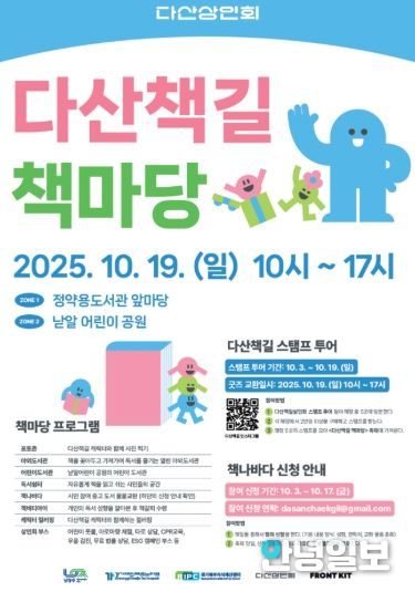 안녕일보 배윤 기자 | 남양주시 다산동 소재 정약용도서관 앞마당과 낟알 어린이 공원에서 오는 19일 “다산책길 책마당” 행사가 열린다.