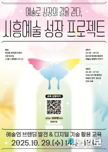 시흥예술 성장 프로젝트는 ‘문화예술 성장 및 예술인 브랜딩 발전’이라는 주제로 1부 퍼스널 컬러 교육과 2부 챗지피티(ChatGPT)를 활용한 디지털 교육으로 나눠 진행된다.