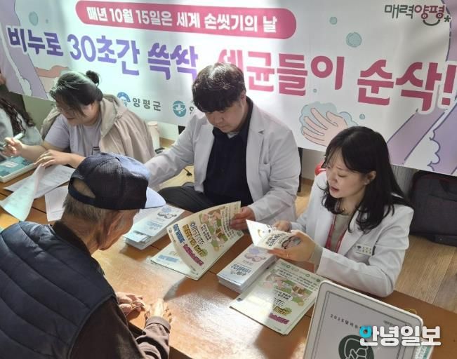 안녕일보 배윤 기자 | 양평군은 15일 ‘세계 손 씻기의 날’을 기념해, 양동면 쌍학 2리 마을회관에서 ‘달리는 행복나눔이웃들’ 운영과 연계한 유관기관 합동 홍보 캠페인을 실시했다.