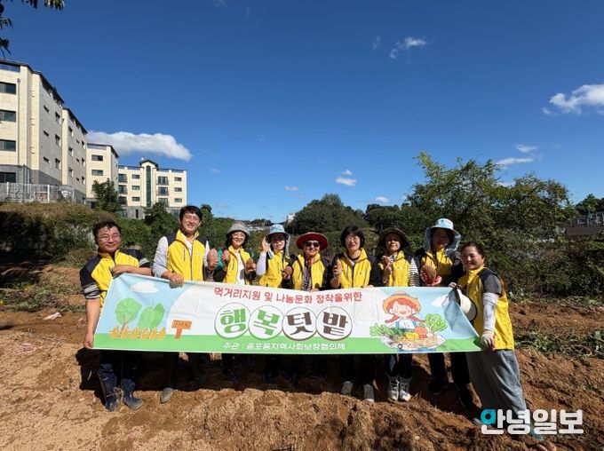 안녕일보 배윤 기자 | 이천시 증포동 지역사회보장협의체는 지난 10월 15일, 증포동 휴경지 텃밭에서 취약계층을 위한 ‘행복텃밭’에서 고구마 캐기를 했다.
