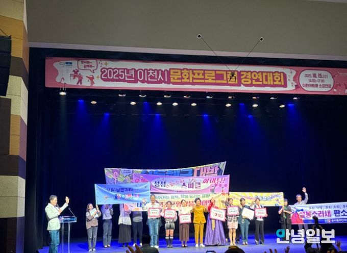안녕일보 배윤 기자 | 이천시는 2025년 10월 15일 이천아트홀 소공연장에서 14개 읍면동 약 450명의 시민과 함께 각 지역의 특색있는 문화와 예술적 역량을 발휘하는 ‘이천시 문화프로그램 경연대회’를 성황리에 마쳤다고 밝혔다.