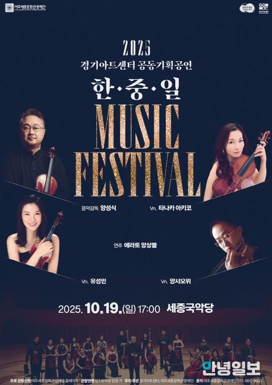 안녕일보 배윤 기자 | 여주세종문화관광재단이 오는 10월 19일, 경기아트센터와 공동기획으로 ‘한·중·일 뮤직 페스티벌’을 세종국악당에서 선보인다.