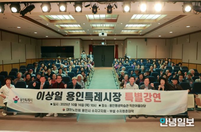 안녕일보 배윤 기자 | 이상일 용인특레시장은 16일 오전 수지구 큰어울마당에서 대한노인회 용인시 수지구지회가 운영하는 수지청춘노인대학 어르신 100여 명을 대상으로 미술 특강을 했다.