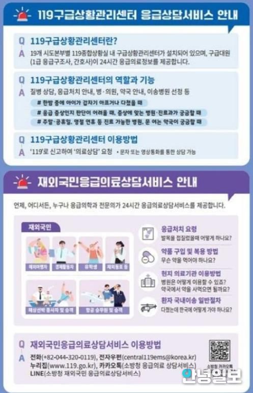 특히 구급상황관리센터는 주말과 공휴일을 포함해 연중무휴로 운영되며, 국민 누구나 119에 전화해 ‘의료상담’을 요청하면 상담요원과 직접 연결되어 필요한 정보를 받을 수 있다. 문자상담과 영상통화 서비스도 제공되어 청각장애인 등도 쉽게 이용할 수 있다.