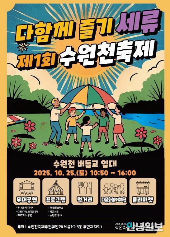 이번 축제는 오전 11시부터 오후 4시까지 진행되며, 다양한 다문화와 지역 주민들이 어우러지는 특별한 장이 될 예정이다. ‘수원천축제추진위원회’는 권선구 세류1·2·3동 주민자치회가 공동으로 협력하여 만든 단체로, 지역사회가 함께하는 축제 개최를 통해 다문화 이해 증진과 주민 화합을 목표로 하고 있다. 이번 행사는 다채로운 공연, 체험 부스, 먹거리 장터 등이 마련돼 방문객들에게 풍성한 즐길 거리를 제공될 예정이다.