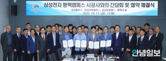 안녕일보 배윤 기자 | 평택시는 17일에 관내 시공 예정인 삼성전자 평택캠퍼스 대형시공사와 간담회 및 협약체결식을 개최했다.