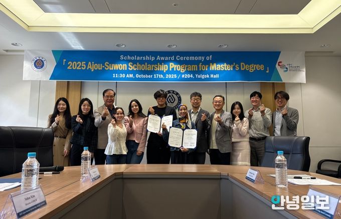 안녕일보 배윤 기자 | 수원시국제교류센터가 17일 아주대학교 율곡관 제1회의실에서 ‘2025 아주-수원 석사과정 장학증서 수여식’을 열고, 자매·우호도시 출신 유학생들에게 장학증서를 전달했다.