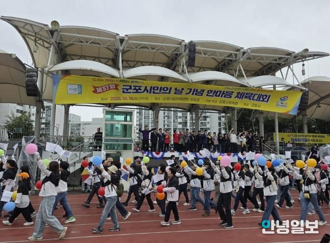 안녕일보 배윤 기자 | 군포시와 군포시체육회가 주최·주관한 ‘제37회 군포시민의 날 기념 한마음체육대회’가 10월 18일 군포 시민체육광장에서 성황리에 개최됐다. 이번 대회는 관내 12개 동 주민들이 참가하여 세대와 지역을 아우르는 화합과 소통의 장을 이루었다.
