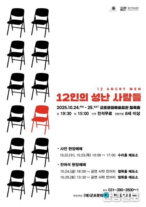 안녕일보 배윤 기자 | (재)군포문화재단은 오는 10월 24일 ~ 10월 25일 군포문화예술회관 철쭉홀에서 기획공연“12인의 성난 사람들”을 선보인다.