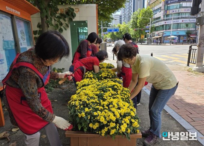 이날 새롭게 구성된 주민자치회 위원 20여 명이 참여해 노란색과 보라색의 국화 150여 본을 식재했다. 위원들은 잡초 제거, 토양 정비, 배수 정리 등 사전 작업을 마친 뒤, 화단에 국화를 심으며 가을의 정취를 더했다.