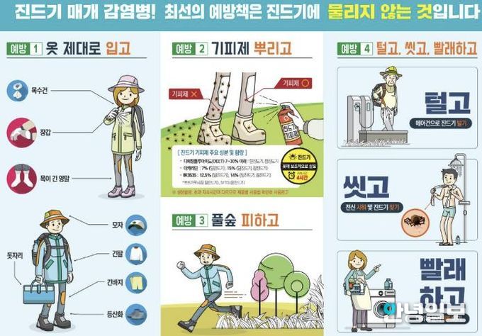 정영란 단원보건소장은 “진드기 매개 감염병에 걸리지 않는 가장 최선의 방법은 진드기에 물리지 않는 것”이라며 “야외 활동 후 1~2주 후 의심증상이 있다면 의료진에게 야외활동력을 알리고 진료를 받아야 한다”고 말했다.
