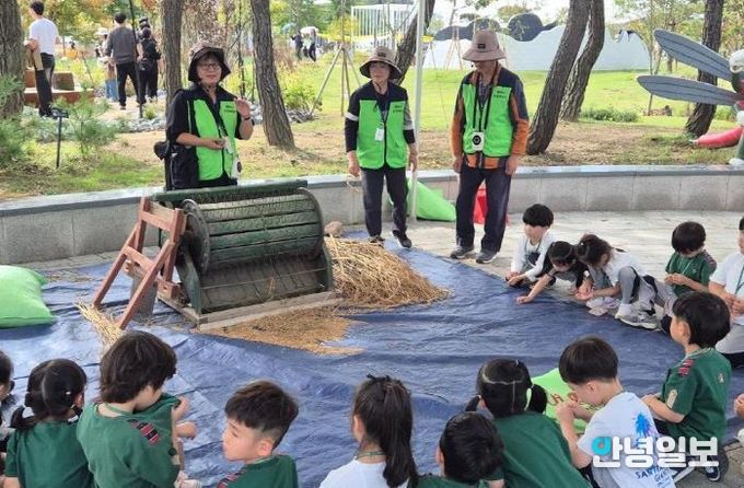 안녕일보 배윤 기자 | 평택시는 지난 16일부터 19일까지 평택시 농업생태원에서 열린 제13회 경기정원문화박람회 기간에 농업해설 및 농촌체험 프로그램의 하나로 ‘오성뜰 벼 탈곡체험’을 운영했다.