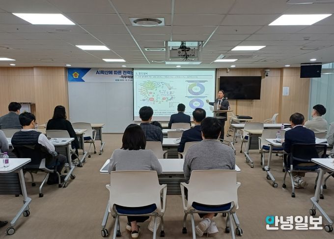 이번 교육은 단국대학교 조홍종 교수를 초빙하여 진행됐으며, AI 산업의 급격한 성장으로 인한 전력 수요 증가와 이에 따른 전력난 문제를 지방재정·정책 차원에서 어떻게 대응할 것인지 심도 있게 다루었다.