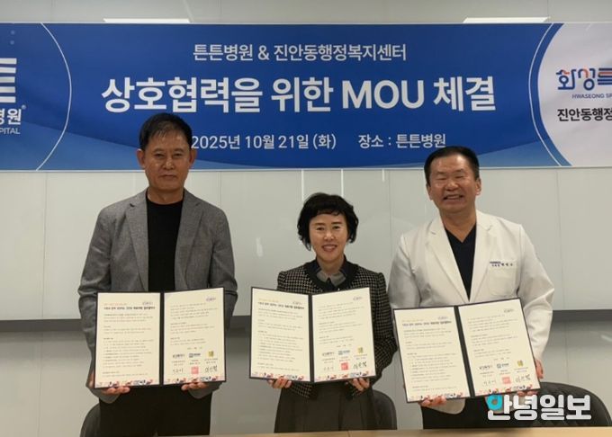 안녕일보 배윤 기자 | 화성특례시 진안동과 진안동 주민자치회가 21일 튼튼병원(원장 박진수)과 함께 지역 내 저소득층 및 취약계층의 건강 증진을 위한 의료지원 업무협약을 체결했다.