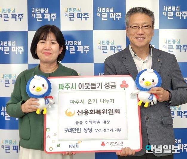 안녕일보 배윤 기자 | 파주시는 지난 21일 신용회복위원회 인천·경기북부지역본부에서 금융 취약계층을 위한 500만 원 상당의 무선 청소기를 전달받았다고 밝혔다.