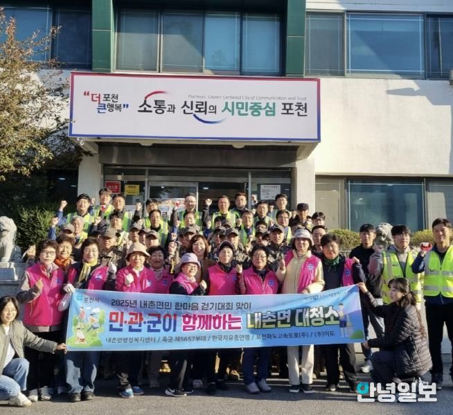안녕일보 배윤 기자 | 포천시 내촌면은 지난 22일, 오는 ‘제10회 내촌면민 한마음 걷기대회’를 앞두고 마을 안길과 도로변 일원에서 민관군 합동 대청소를 실시했다.