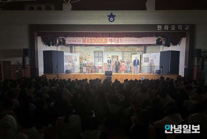 지난 10월 1일과 22일 ▲동일공업고등학교 ▲현화중학교에서 진행된 뮤지컬 '메리골드'는 옴니버스 형식으로 구성되어, 서로 다른 사연을 지닌 인물들의 이야기를 통해 청소년들이 가족과 친구, 그리고 자신의 삶을 되돌아보며 생명의 소중함과 공감의 가치를 느낄 수 있도록 기획됐다.