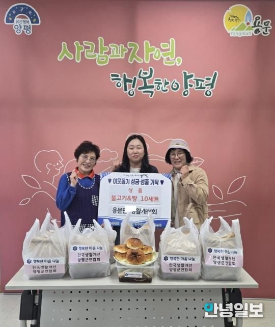 안녕일보 배윤 기자 | 양평군 용문면은 지난 22일 용문면 생활개선회가 쌀쌀해진 날씨 속 어려움을 겪고 있는 이웃들을 위해 직접 만든 불고기와 단팥빵 10세트를 기부했다고 밝혔다.
