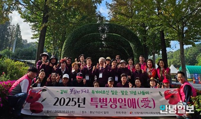 안녕일보 배윤 기자 | 오산시 신장1동 지역사회보장협의체는 지난 10월 22일, 충남 아산 일대에서 2025년 칠순·팔순을 맞은 어르신 20여 명을 모시고 ‘특별생일애(愛)’ 생신 기념 나들이 행사를 진행했다고 밝혔다.