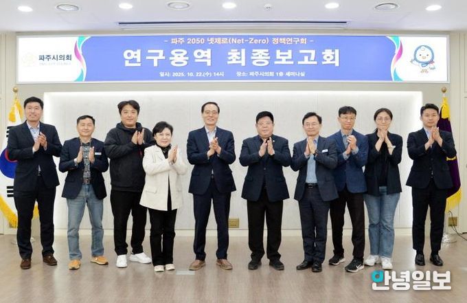 안녕일보 배윤 기자 | 파주시의회 의원연구단체인“파주 2050 넷제로 정책연구회”는 지난 22일 '파주 2050 넷제로(탄소중립) 정책 수립을 위한 기초 연구용역'최종보고회를 개최했다.