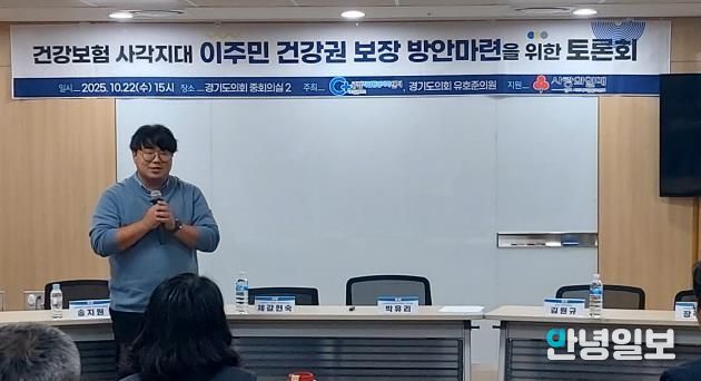 안녕일보 배윤 기자 | 경기도의회 여성가족평생교육위원회 유호준 의원(남양주 다산·양정)은 10월 22일 오후 3시, 경기도의회 중회의실에서 열린 '건강보험 사각지대 이주민 건강권 보장 방안 마련을 위한 토론회'를 공동주최하며, 미등록 이주민의 건강권 보장을 위한 공공의 책임 강화 필요성을 강조했다.