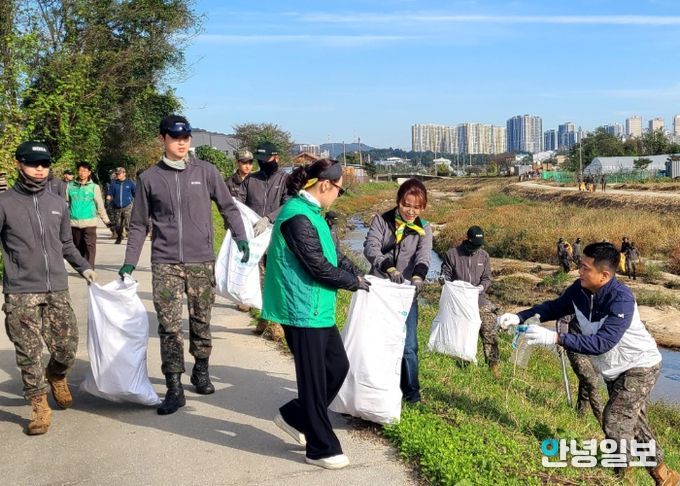 안녕일보 배윤 기자 | 새마을문고 양주시지부는 10월 21일 오전 8시 50분부터 약 2시간 동안 독수리병영도서관 장병들과 함께 부대 앞 샘내 일대 천변에서 ‘건강과 환경을 지키는 줍킹데이’ 행사를 성황리에 개최했다.