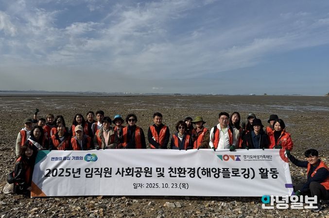 안녕일보 배윤 기자 | 경기도여성가족재단은 23일 화성시 고온항 및 궁평항 일대에서 임직원 36명이 참여한 가운데 ‘2025년 사회공헌 및 친환경 활동’(해양 플로깅)을 펼쳤다.
