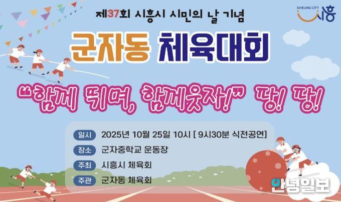 안녕일보 배윤 기자 | 시흥시 군자동 체육회는 제37주년 시민의 날을 맞아 오는 25일 군자중학교 운동장에서 ‘함께 뛰며, 함께 웃자’ 체육대회를 개최한다.