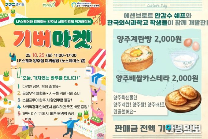 이날 행사에서는 사회적가치와 지역자원 순환의 의미를 담아 학생 10여 명이 관내에서 재배된 쌀, 배, 계란을 주재료로 직접 개발한 메뉴(양주계란빵, 양주배쌀카스테라)를 판매할 예정이며, 수익금 전액을 지역사회에 기부하여 청소년 주도 나눔 활동을 실천할 예정이다.