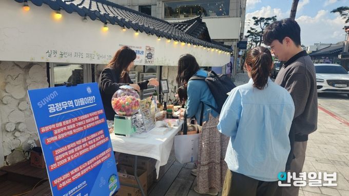 안녕일보 배윤 기자 | 수원특례시는 경기도 공정무역 포트나잇 주간(10월 24일~11월 7일)에 맞춰 25일 행궁동 ‘지구인의 놀이터’에서 공정무역 캠페인을 펼쳤다. 29일에는 경기대학교 소성박물관 주변에서도 캠페인을 열 예정이다.