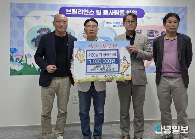 안녕일보 배윤 기자 | 브릴리언트 팀 여주지사는 지난 10월 25일 여주시 금사면에 여주지사 사무실 개소식을 가지며 금사면행정복지센터에 이웃돕기 성금 100만원을 기탁했다.