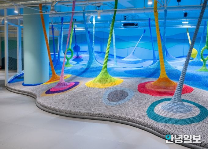 ‘갯벌놀이터’는 갯벌의 생태적 요소와 환경적 특성을 바탕으로, 그물 구조를 예술적으로 구현한 비정형 놀이시설이 특징이다. 공간 자체가 하나의 예술적 체험으로 작동하며, 어린이들이 갯벌의 역동성과 생명력을 몸으로 느끼고 탐험할 수 있도록 설계됐다. ‘갯벌책방’은 약 2,000권 규모의 서가를 갖춘 자율 운영 독서 공간으로, 놀이와 독서를 함께 즐길 수 있는 열린 문화공간이다. 경기문화재단 임직원, 지역 주민, 경기도 내 출판사 등의 자발적인 도서 기증으로 서가가 채워지며, 기증자에게는 경기문화재단 기부캠페인 ‘문화이음’을 통한 기부 혜택이 제공된다. ‘갯벌마당’은 탄성 고무칩 바닥에 다양한 색상과 형태의 패턴이 조성된 야외 놀이터로, 어린이들이 즐기는 야외 마당 놀이(멀리뛰기, 사방치기, 원마커 등)를 할 수 있도록 구성되어 있으며 자유로운 신체 활동이 가능하다. 인근 테라스에는 인조잔디와 야외용 테이블·의자가 마련되어 있어 보호자들이 아이들을 가까이에서 지켜보며 휴식을 취할 수 있다.