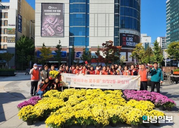 안녕일보 배윤 기자 | 고양특례시 덕양구 화정2동은 지난 28일, 가을을 맞아 주민들이 자주 찾는 화정역 광장과 화정31호 경관광장 일대에 국화꽃을 식재했다고 밝혔다.