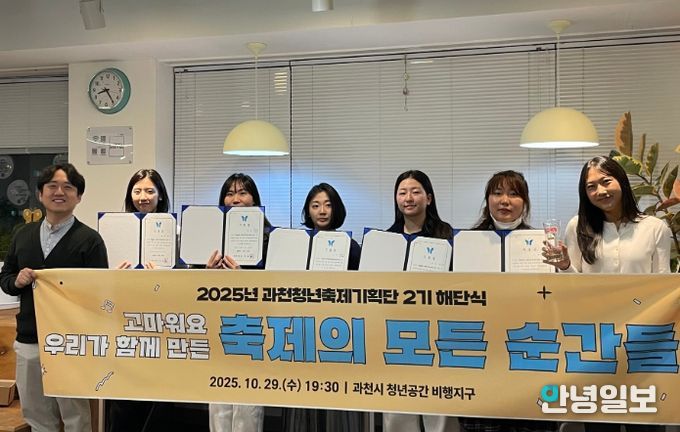 안녕일보 배윤 기자 | 과천시는 지난 29일 비행지구에서 ‘제2기 과천청년축제기획단’(이하, 기획단) 해단식을 열었다. 기획단은 이번 해단식을 끝으로 4개월간의 활동을 공식적으로 마무리했다.