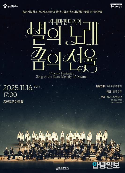 안녕일보 배윤 기자 | (재)용인문화재단은 오는 11월 16일 용인포은아트홀에서 용인시립청소년오케스트라와 용인시립소년소녀합창단 합동 정기연주회 '시네마 판타지아 : 별의 노래, 꿈의 선율'을 개최한다.
