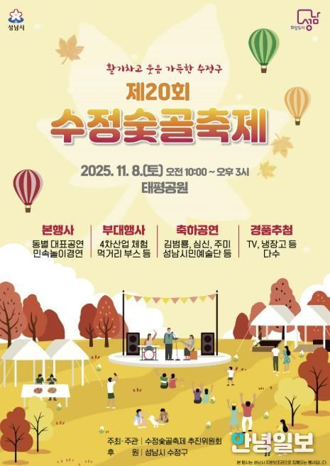 안녕일보 배윤 기자 | ‘제20회 수정숯골축제’가 오는 11월 8일 오전 10시~오후 3시 태평공원(수정구 수정로 7)에서 열린다.