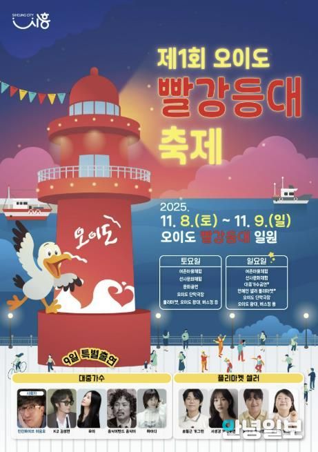 안녕일보 배윤 기자 | 시흥시는 오는 11월 8일부터 9일까지 양일간 오전 10시부터 오후 8시까지 시 대표 관광명소인 오이도 빨강등대 일원에서 ‘제1회 시흥 오이도 빨강등대 축제’를 개최한다.