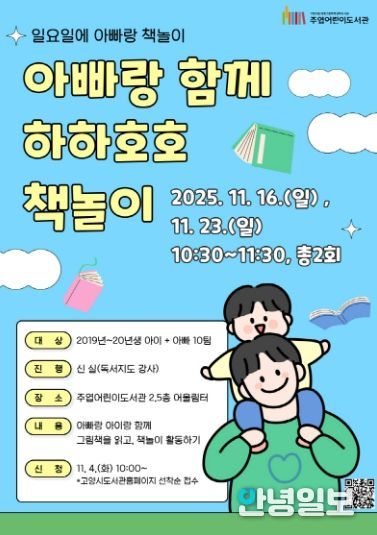안녕일보 배윤 기자 | 고양특례시 주엽어린이도서관은 오는 11월 16일과 11월 23일, 두 차례에 걸쳐‘아빠랑 함께 하하호호 책놀이’를 운영한다.