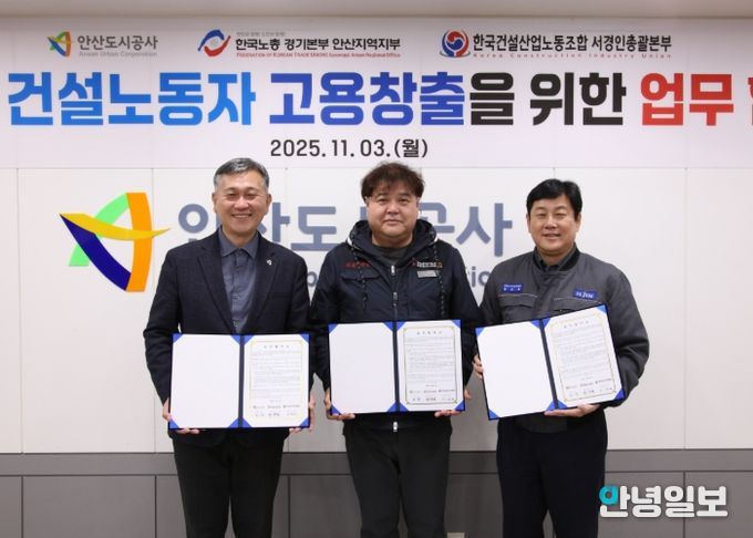 안녕일보 배윤 기자 | 안산도시공사는 한국노총 경기본부 안산지역지부, 한국건설산업노동조합 서경인총괄본부와 업무협약을 맺었다고 4일 밝혔다.