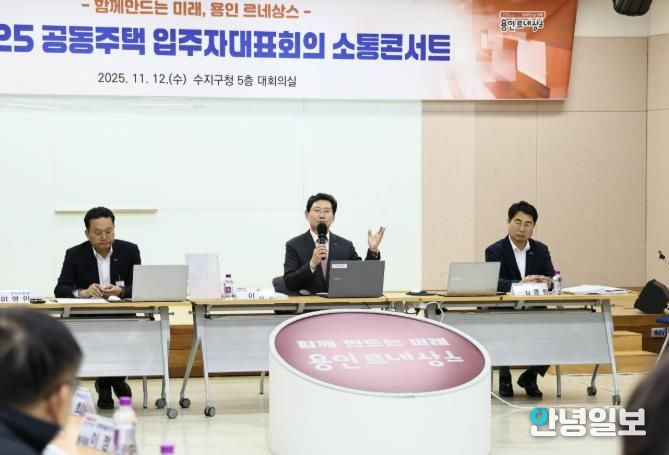 안녕일보 배윤 기자 | 이상일 용인특례시장은 12일 오후 수지구청 대회의실에서 수지구 소재 26개 공동주택 입주자대표 39명과 함께 ‘공동주택 입주자대표회의 소통콘서트’를 열고 2시간 50분 동안 단지별 현안, 고충을 듣고 해결방안을 논의했다.