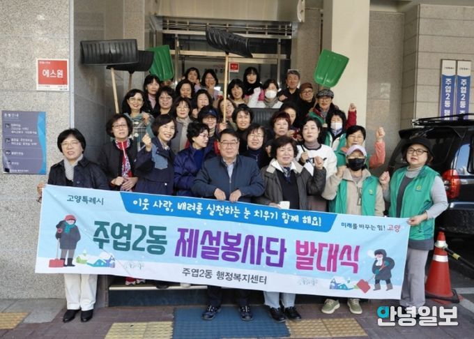 안녕일보 배윤 기자 | 고양특례시 일산서구 주엽2동은 지난 12일 통장협의회와 직능단체 회원 등 40여 명이 참석한 가운데 ‘2025년 주엽2동 제설봉사단 발대식’을 개최했다.