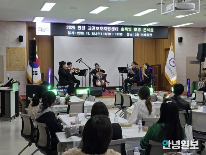 안녕일보 배윤 기자 | 경기도연천교육지원청 교권보호지원센터는 2025년 11월 12일 연천교육지원청 3층 수레울관에서 교원의 정서 회복과 마음 치유를 위한 '초록빛 힐링 콘서트'를 진행했다.