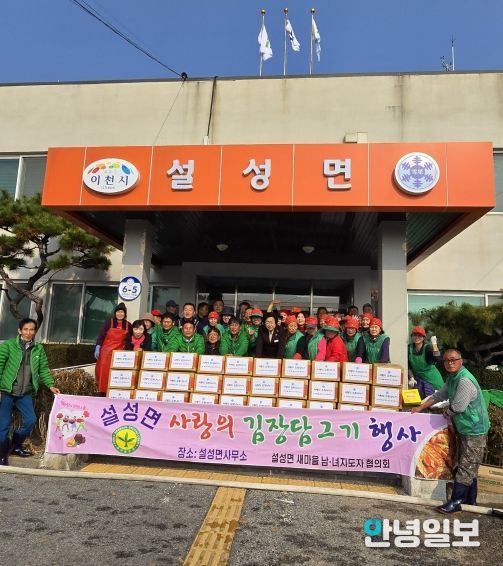 이날 행사는 설성면 새마을남녀지도자 60여 명이 참여하여 배추 700여 포기로 김장 김치를 담가 관내 홀몸 어르신, 저소득 가정 등 어려운 이웃에게 직접 전달해 따뜻한 겨울을 날 수 있도록 했다.